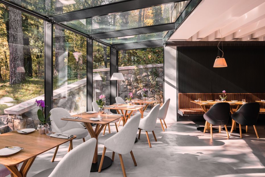 Restaurace La Villa dnes zve na obědy v zimní zahradě, večeře v atmosféře první republiky, francouzskou zážitkovou kuchyni a lokální suroviny dokonale propojené s kuchařským uměním šéfkuchaře Júlia Löfflera.